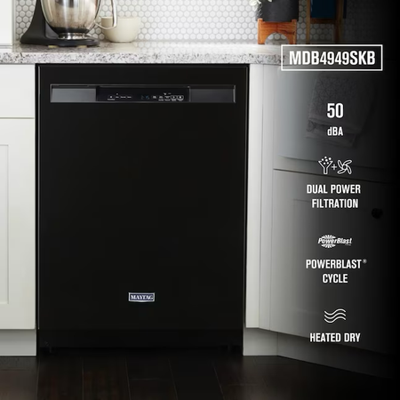 Maytag Front Control 24-in Built-In Dishwasher (Black), 50-dBA