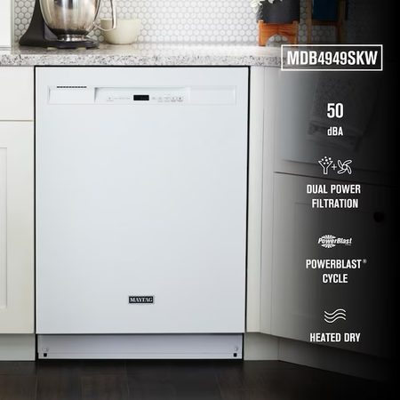 Maytag Front Control 24-in Built-In Dishwasher (White), 50-dBA