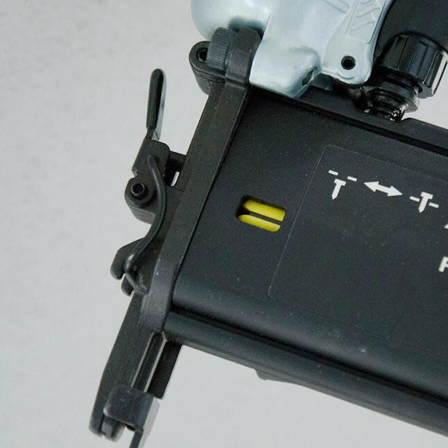 Reload indicator: located on the magazine, alerts the user when nail quantities are low so that blank drives are avoided