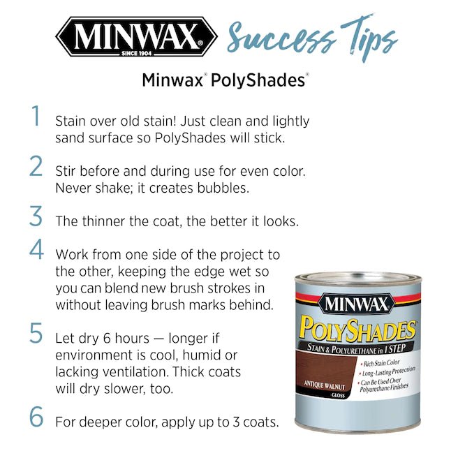 Minwax PolyShades enhances wood grain by combining beautiful rich stain color and long-lasting polyurethane protection in one easy step.