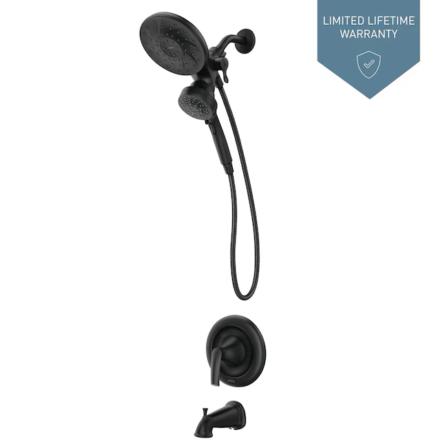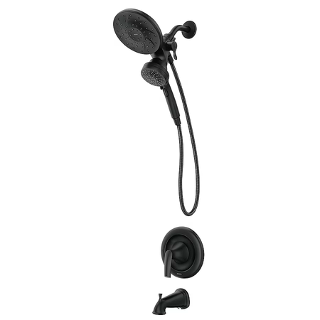 The Graeden™ Tub and Shower Faucet offers an effortless showering experience, featuring magnetic docking, smooth lines, and a sleek, transitional design. It’s equipped with six shower settings and three showering configurations -- use the showerheads separately or together for maximum coverage. The showerhead also features Moen’s Magnetix® magnetic docking technology, so it’s easy to release and return the handshower – even with your eyes closed. Available in Matte Black, a contemporary, yet surprisingly neutral, modern black finish.