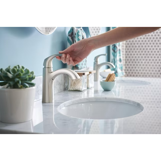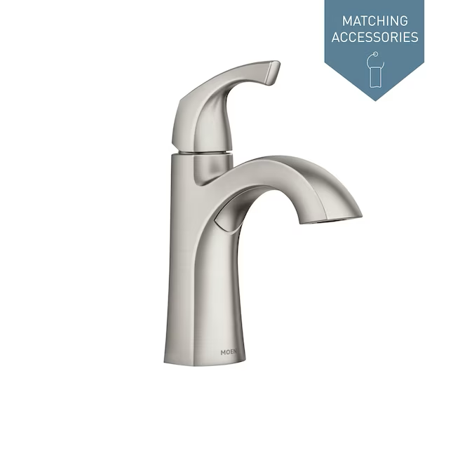 Moen Lindor Spot Resist Brushed Nickel Single Hole 1-handle WaterSense Bathroom Sink Faucet with Drain and Deck Plate