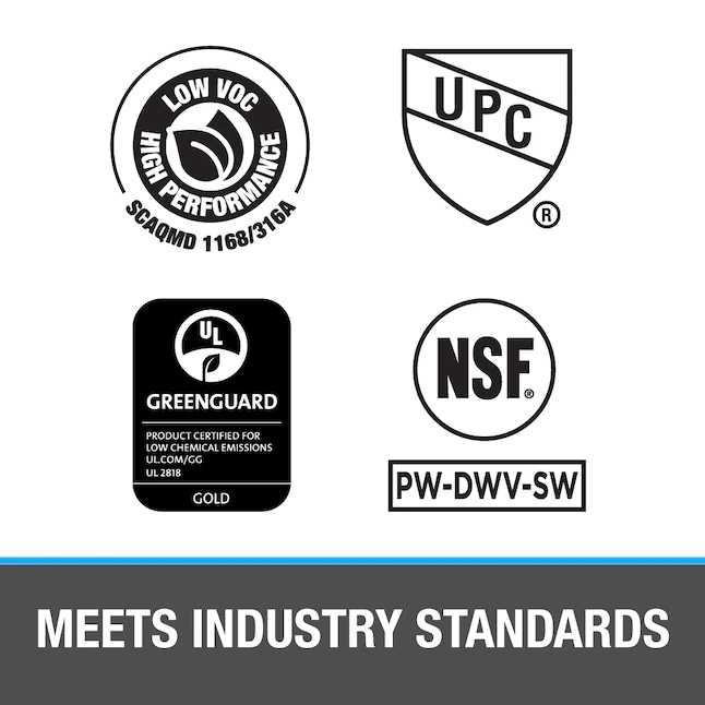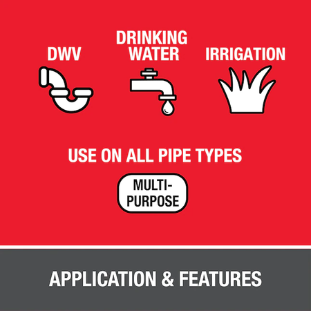 • Meets the performance requirements of ASTM Standards D2564, D2235 and F493, and complies with NSF/ANSI 61 health effects requirements
