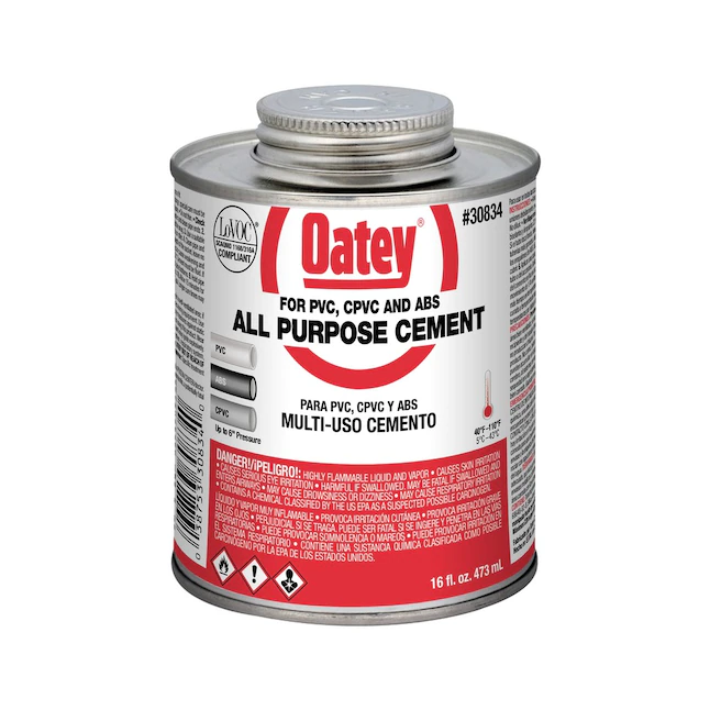 Oatey® All-Purpose ABS, PVC and CPVC Medium Bodied Clear Cement is recommended for DWV, potable water and irrigation applications. Its medium body has excellent gap filling properties and is easy to apply with included in-lid dauber. This milky-clear, all-purpose cement can be used to solvent weld all schedules and classes of ABS, PVC and CPVC pipe and fittings up to 6 in. diameter with interference fit. Oatey products have earned the trust of plumbing professionals for over 100 years.