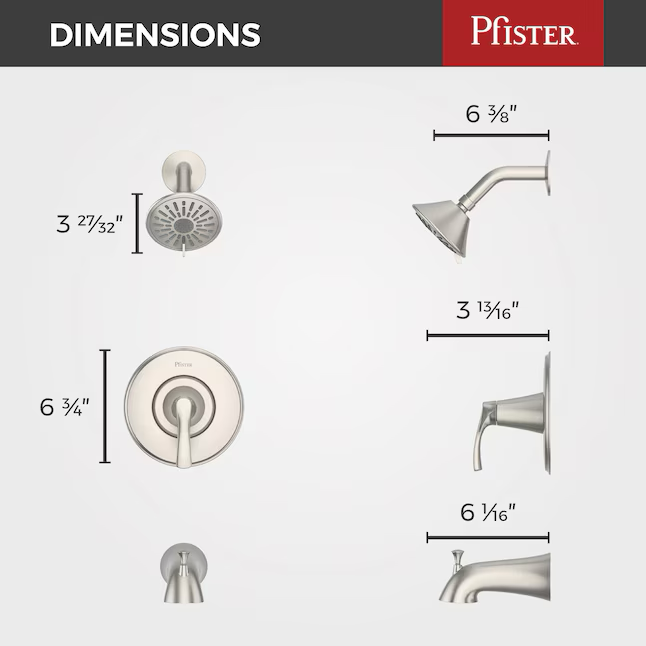 - Dimensions Shower Head Width (Inches) 3.84 Tub Spout Length (Inches) 6.06