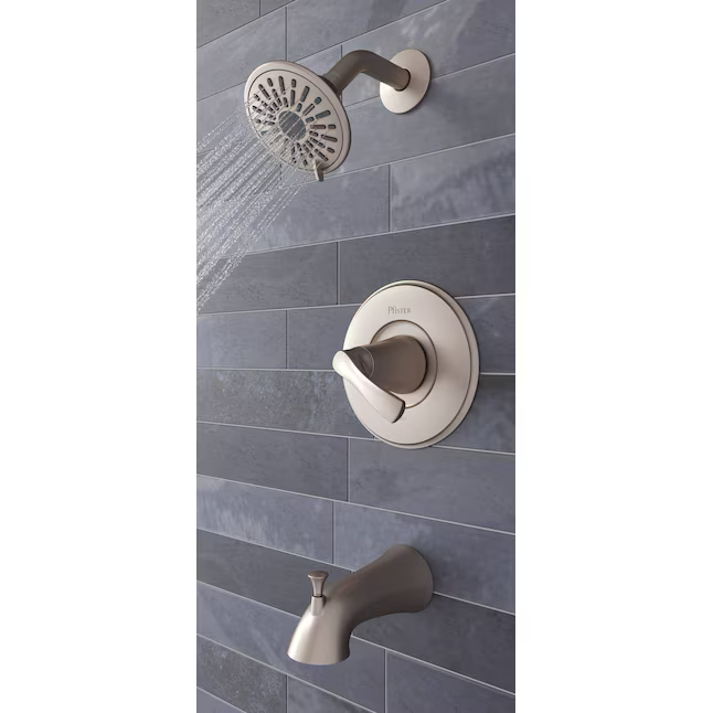 Pfister Masey Brushed Nickel 1-handle Multi-function Round Bathtub and Shower Faucet Valve Included