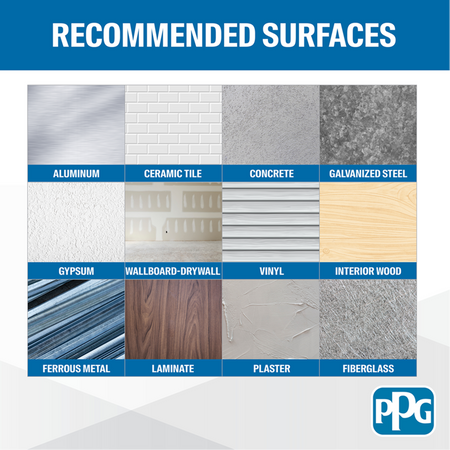 - Recommended for aluminum, ceramic tile, concrete, masonry block, ferrous metal, fiberglass, galvanized steel, drywall, interior wood, laminate, plaster, vinyl and architectural plastics