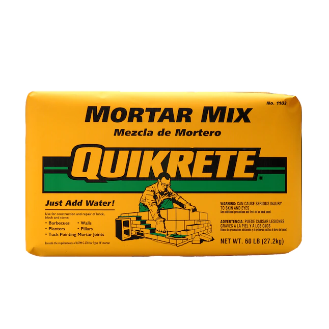 QUIKRETE mortar mix is a pre-blended, sanded product used as a construction grade mortar mix designed for laying brick, concrete masonry units and stone. The standard formulation meets ASTM C270 and C1714 for type N mortar.