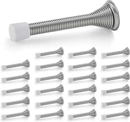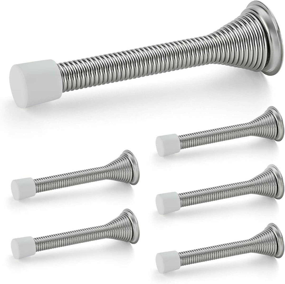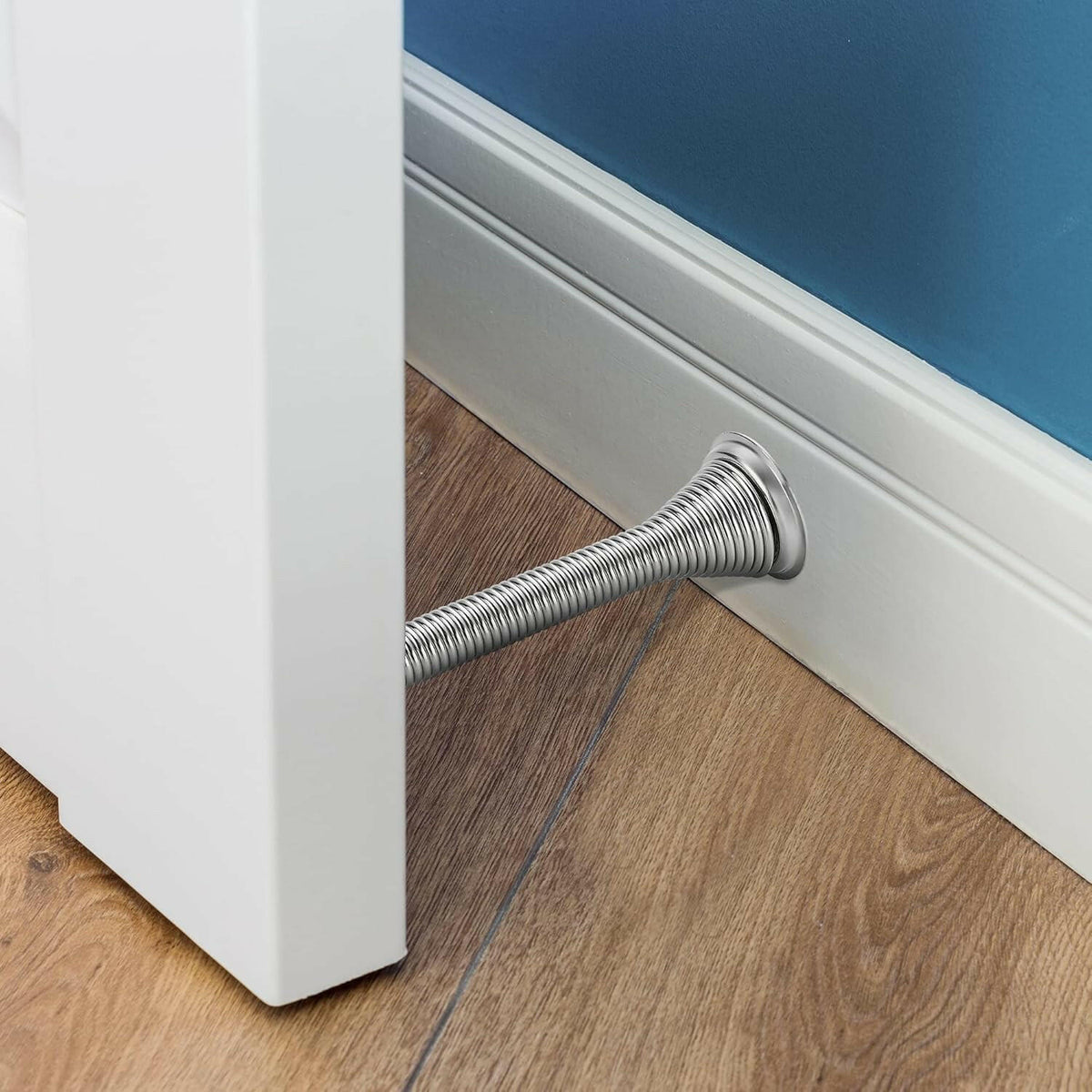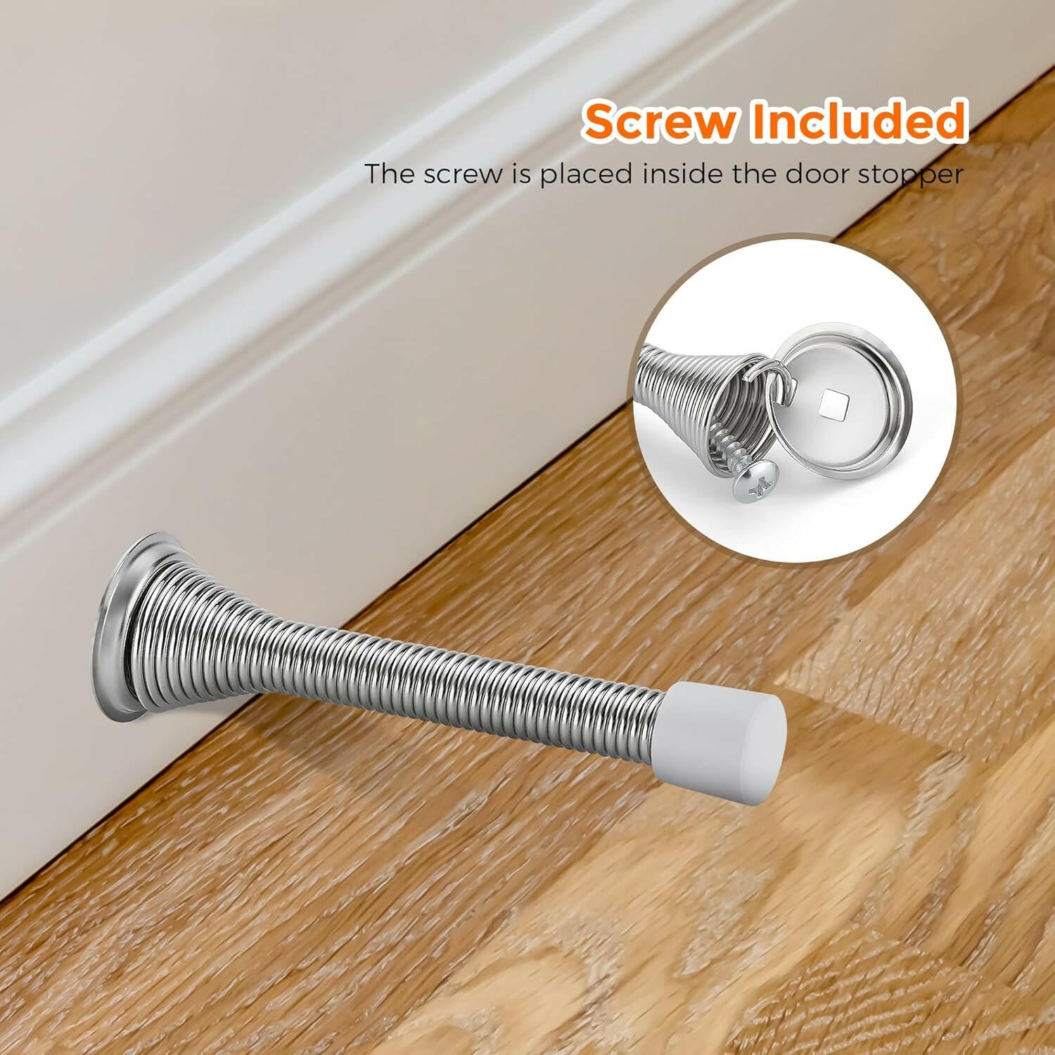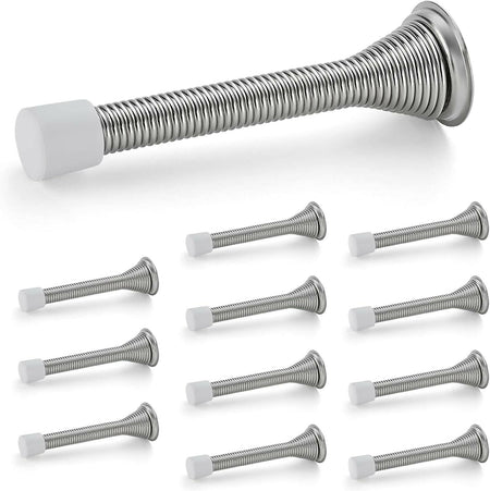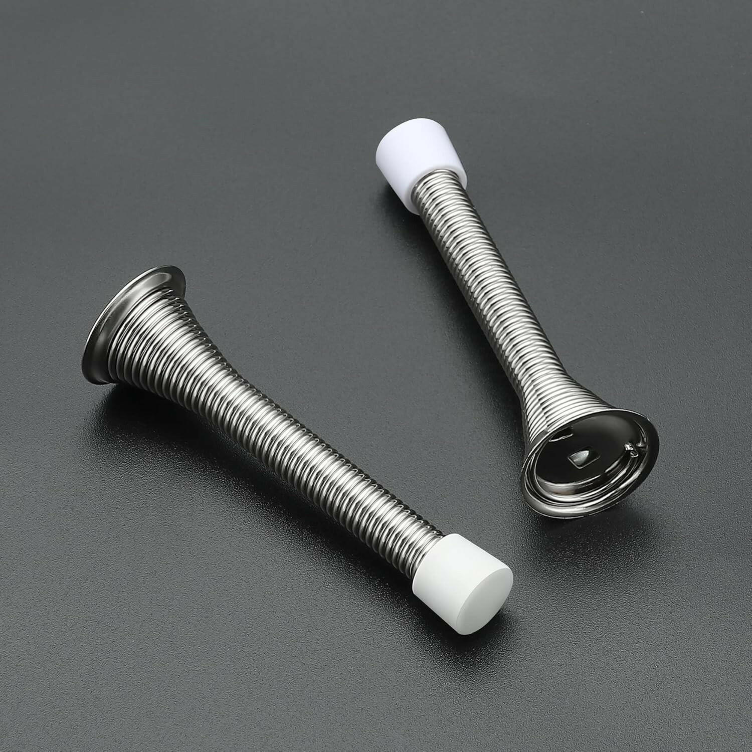 - Brushed nickel finish adds a beautiful touch to your home decor and the spring door stop design allows flexibility with door. You can install it in any place such as kitchen, bathroom, living room.
