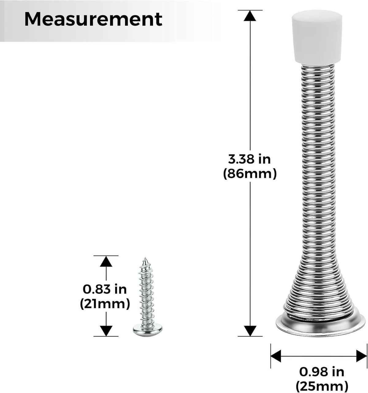 - Dimension - Base diameter: 0.98" (25mm), Length of black door stop: 3-2/5"(86mm), Length of screw: 0.82in(21mm)