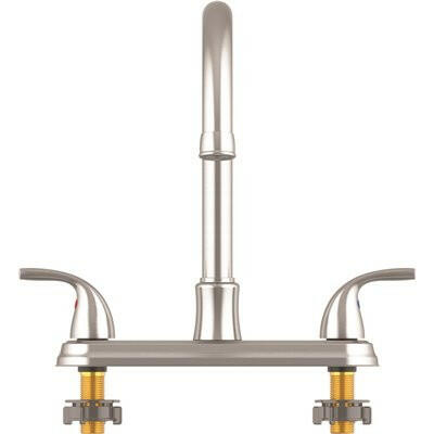 Seasons Raleigh Double-Handle Gooseneck Kitchen Faucet In Stainless Steel offers a convenient high arc spout for ease of use in the kitchen. The dual-handle design features separate handles for hot and cold water for precise adjustment. Ensuring excellent water pressure and flow with a drip-free performance are the ceramic disc valves and the 1.8 GPM flow rate.