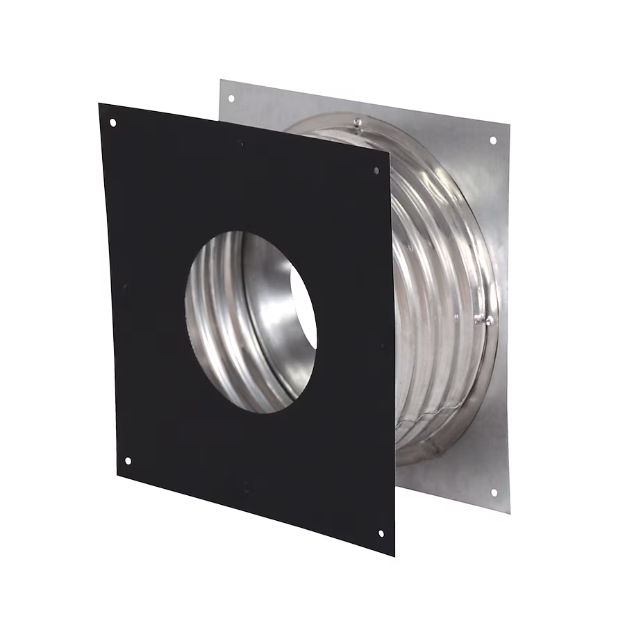 When installed according to manufacturer specifications, the wall thimble provides the required 1 inch air space to combustibles