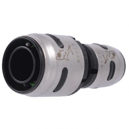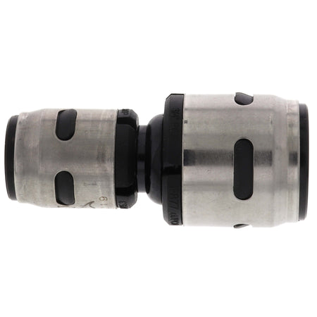 Push-to-connect PEX fitting for faster installation compared to traditional PEX rough-in plumbing methods. Requires no special tools, crimp / clamp / PEX rings, increasing productivity. Securely and permanently connect same-sized PEX pipe together. Can be rotated after connected, and is ideal for working in tight spaces. Green visual indicator lets you know when PEX tubing is inserted to the proper depth and reduces the risk of installation errors.
