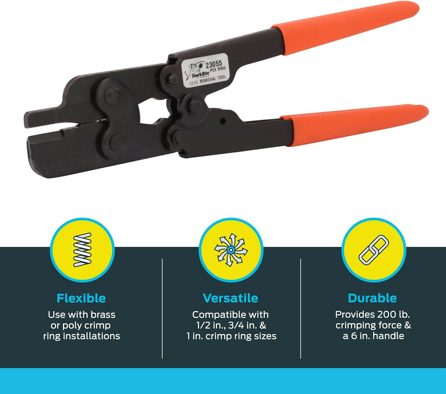 • Works with 1/2 in., 3/4 in. and 1 in. Copper Crimp Rings.