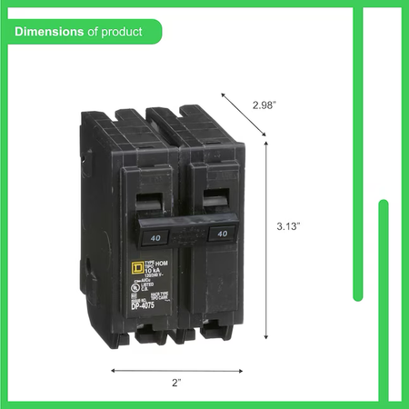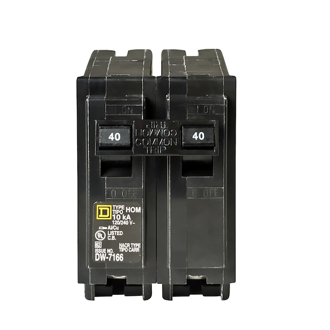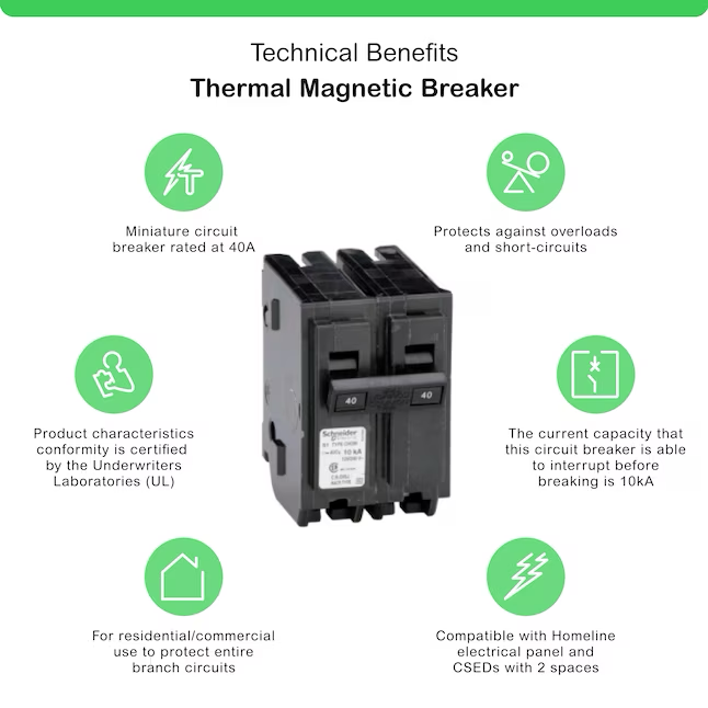• The Square D by Schneider Electric Homeline 40 Amp Two-Pole Circuit Breaker is used for overload and short-circuit protection of your electrical system