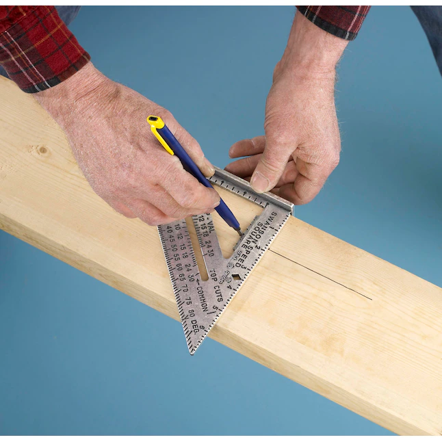 Gradations included for marking common, hip, valley, and jack rafters; Useful for determining and marking angles and making square cuts on boards