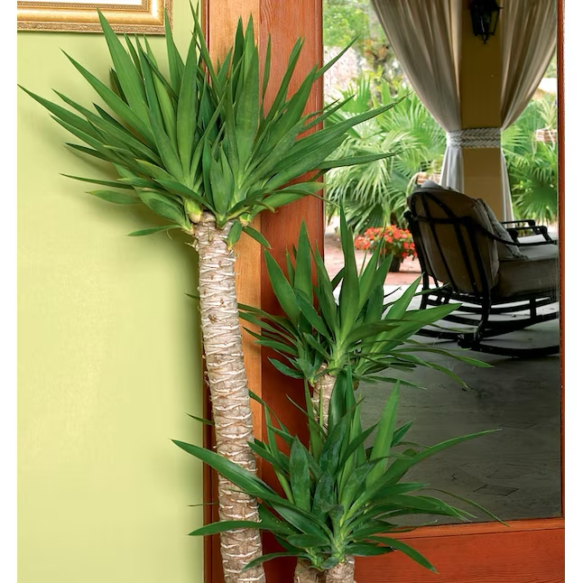 Yucca cane is easy to grow and a great choice if just starting out with houseplants. It shows off clusters of rich green sword-like leaves on thick, woody trunks.