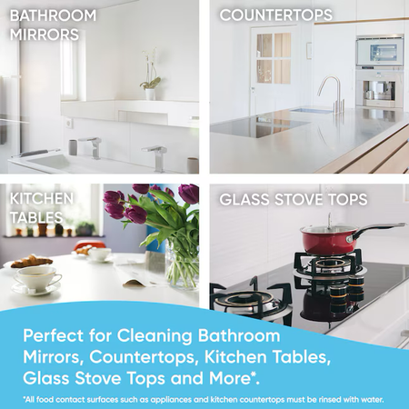 Kill viruses and bacteria that may be hiding on your hard and non-porous surfaces, like kitchen and bathroom counters, by using Windex Multi-Surface Disinfectant Cleaner, which kills 99.9% of germs. This disinfectant spray gets to work on lifting dirt and smudges right away, meaning you get a fast and easy clean. With a classic and fresh citrus scent, it leaves your bathrooms and kitchens smelling great! It’s all combined in this simple to use spray, and that means you can clean, disinfect and let all the light in – all at the same time – without leaving residue behind. You can use it as a window cleaner, a glass stove top cleaner, and to disinfect hard, non-porous surfaces, such as glass tables, mirrors, bathroom surfaces, countertops, kitchen tables, door knobs and more, all with a streak-free shine. Let this disinfectant cleaner get to work so you don’t have to, and send germs, viruses and bacteria packing. Just spray, wait and wipe on hard, non-porous surfaces. Yes, it’s that easy: it’s Windex! WHERE TO USE: Bathroom surfaces, bathroom mirrors, glass shower doors, countertops, glass frames and décor, glass stove tops, kitchen tables, glass microwave doors. When used as directed, kills: Staphylococcus aureus (Staph), Salmonella enterica (Salmonella), Pseudomonas aeruginosa (Pseudomonas), Streptococcus pyogenes (Strep), Rhinovirus Type 37 (common cold), Influenza A2/Hong Kong (H3N2) (flu) (virus) Rhinovirus Type 37 (common cold), Influenza A2/Hong Kong (H3N2), Influenza B Staphylococcus aureus (Staph), Enterobacter aerogenes (Enterobacter), Escherichia coli (E. coli), Salmonella enterica (Salmonella), Campylobacter jejuni, and Listeria monocytogenes (Listeria), Streptococcus pyogenes (Strep) Use as directed All food contact surfaces such as appliances and kitchen countertops must be rinsed with water