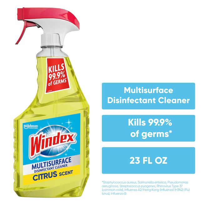 • Windex Disinfectant Cleaner Multi-Surface Citrus Fresh kills 99.9% of germs