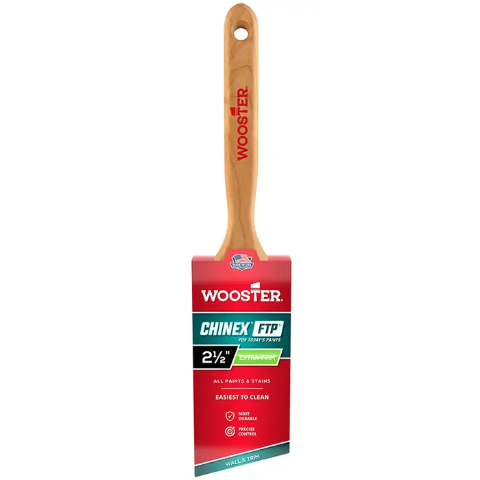 Wooster Chinex FTP brushes are the best choice for fast-drying coatings. Featuring 100-Percent DuPont Chinex synthetic bristles, no other brush offers better clean ability or durability. It outwears bristle 7 to 1. Compared to other Chinex brushes, FTP has added stiffness and a fuller, softer tip exclusively from Wooster. This increases paint release and reduces drag, so the brush pushes paint farther with cleaner edges. Whether you are working inside or out, Chinex FTP is the brush For today’s paints.